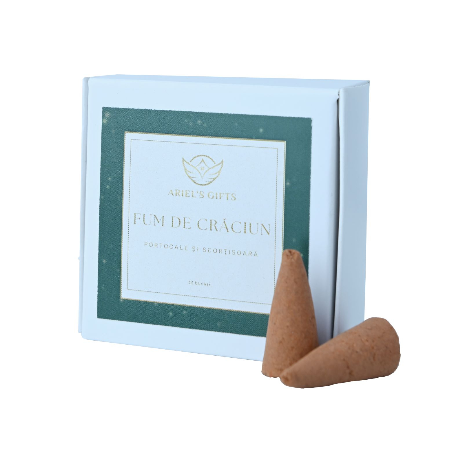 Conurile ”Fum de Crăciun” sunt cu parfum de portocală, scorțișoară și pulbere de joss.Pot fi folosite în curățarea energetică a spațiului de locuit, a spațiului de lucru sau în ritualurile de rugăciune, meditație și relaxare. Aromele specifice sărbătorilor de iarnă pot fi folosite în orice moment în care dorești să simți ”căldura de acasă ”.